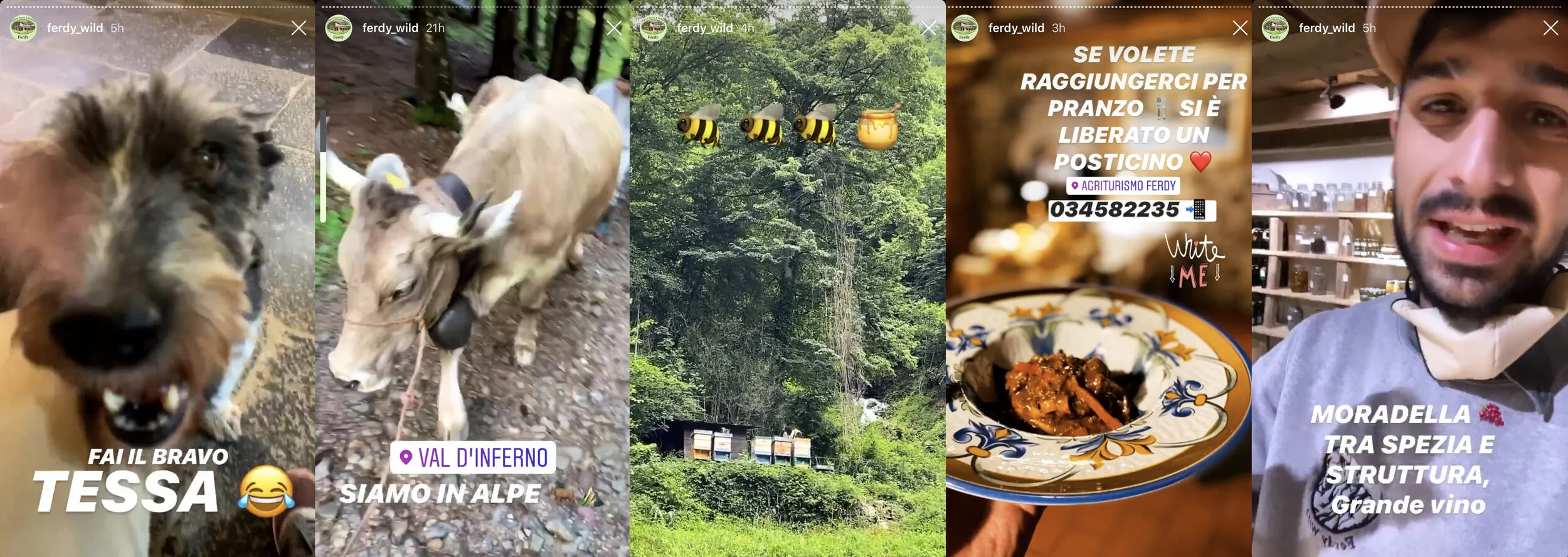 Si, esatto. Il marchio di fabbrica della comunicazione di Ferdy Wild è un racconto a 360° delle attività che l’azienda vive ogni giorno: l’inizio del servizio, gli incontri con dei rappresentanti locali ma anche il tragitto delle mucche al pascolo o un lavoro di restauro in una delle camere. Io come spettatore sono li con loro, vivo le loro avventure e sento una comunicazione totalmente priva del rigore “commerciale” ma ripiena fino all’essenza di naturalezza e coinvolgimento tipico di chi sta parlando ad un amico piuttosto che ad un cliente (in questo Nicolò ne sta creando un marchio di fabbrica).